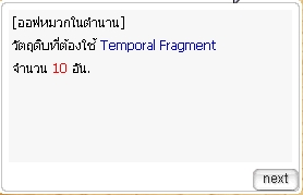 เตรียมไอเท็มสำหรับออฟด้วย Temporal Fragment 10 เม็ดในรอบแรก (หาได้จาก Casino Shop)