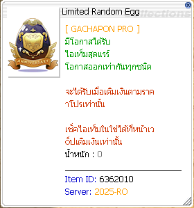 ในไข่ Limited Random Egg มีไอเทมดังนี้